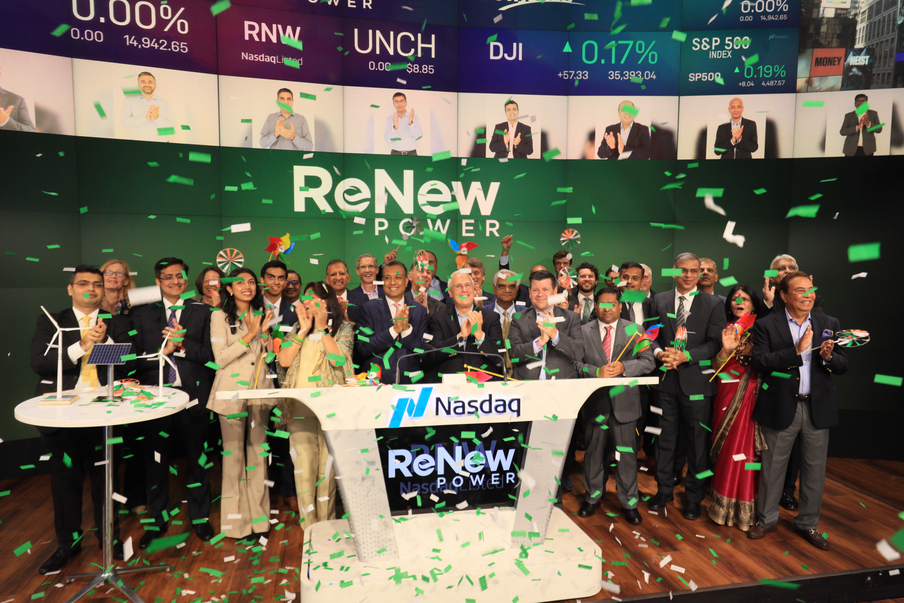 The Nasdaq Opening Bell ceremony as ReNew Power lists on the U.S. stock exchange on Aug. 24, 2021. (Photograph: Nasdaq Twitter site)