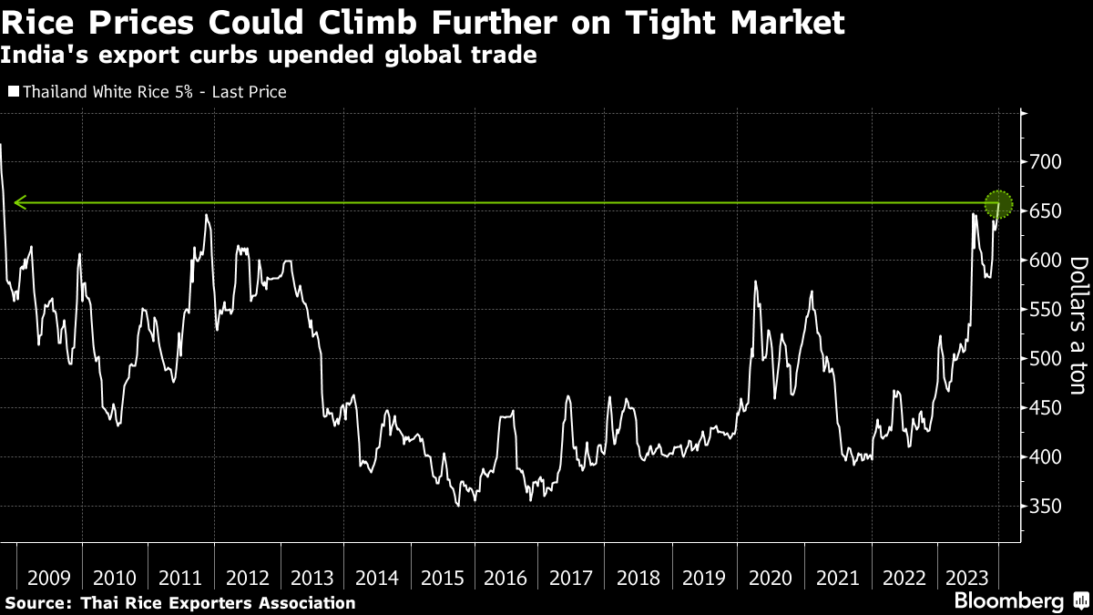 Nations across Asia and Africa have scrambled to secure supply since India ramped up its restrictions in July. Rice inflation in the Philippines has surged, while Indonesia has asked its military to help farmers boost output. The nation is a major importer and is gearing up for a presidential election next month.