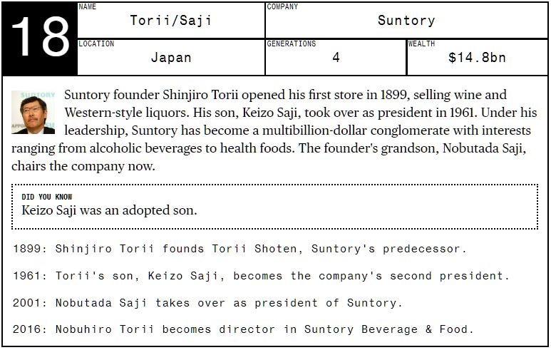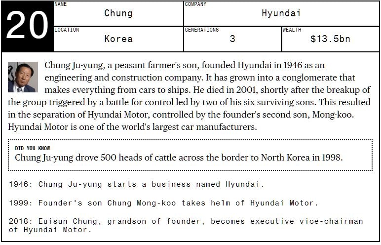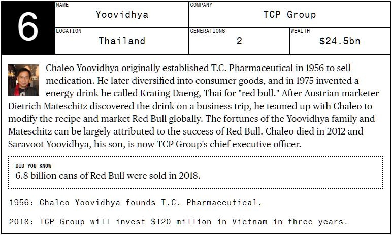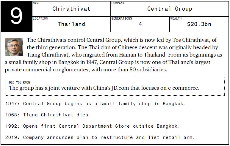 Net worth figures are as of July 19, 2019. To qualify, a family fortune must have Asian origins. The ranking excludes first-generation fortunes and those fortunes controlled by a single heir. Clans whose source of wealth is too diffuse or opaque to be valued are also excluded.