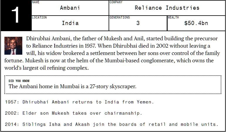 For the Ambanis, whose palatial home towers over Mumbai and is one of the world's most expensive private residences, that has never been truer. They are Asia's richest family, with a $50 billion fortune.