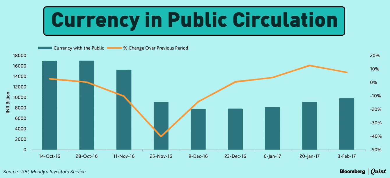 Moody's expects adverse trends of demonetisation to continue till March 2017. In November last year, the government removed nearly 86 percent of bank notes from circulation in a bid to curb corruption.