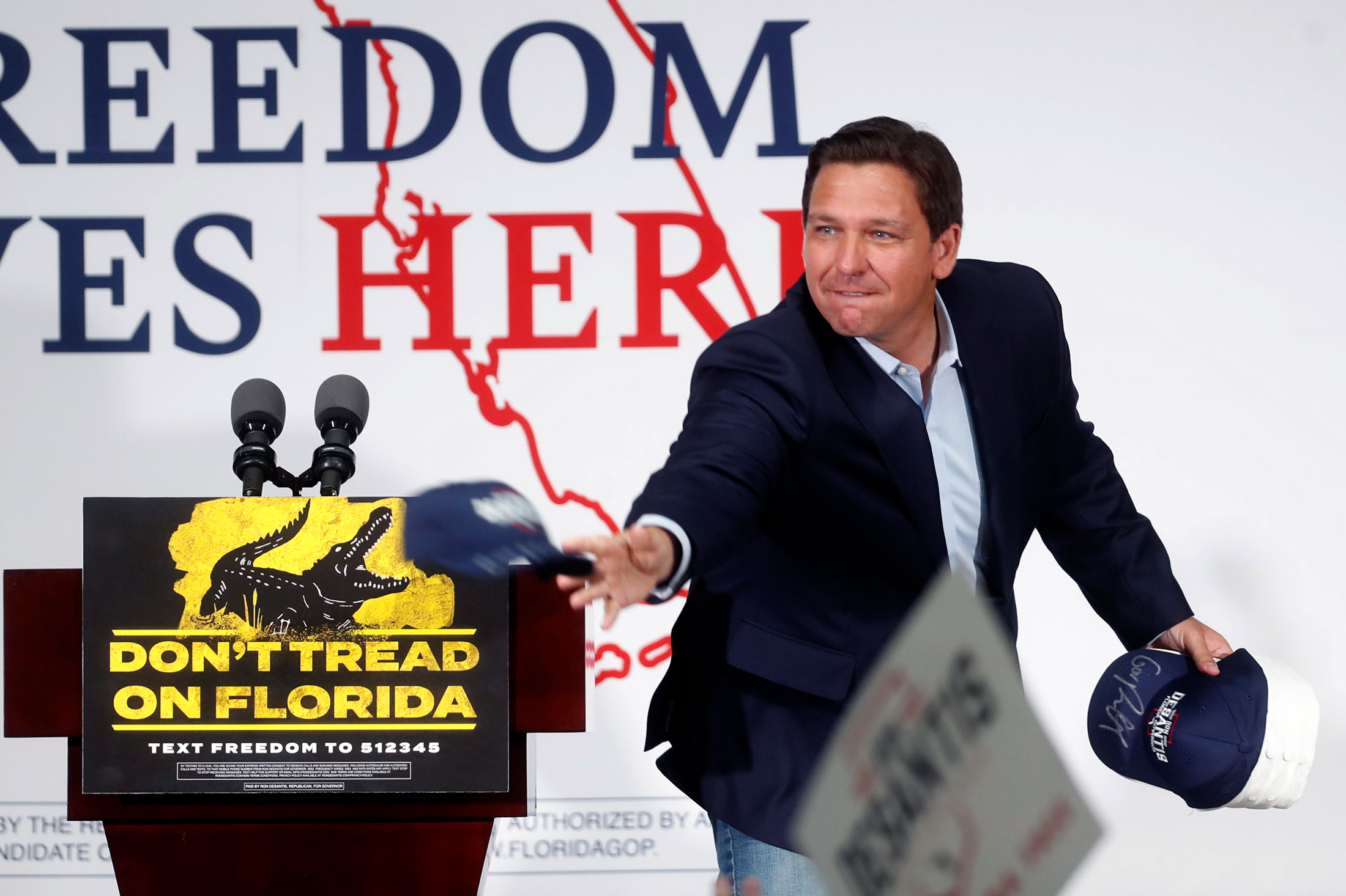 Two days before the midterm elections, Florida Governor Ron DeSantis sauntered onstage at a boisterous rally in an airplane hangar in Sarasota and, as Donald Trump likes to do, began tossing baseball caps to the crowd. The similarities with the 45th president didn't end there. DeSantis mimicked Trump's braggadocio, touting his own 2018 victory as “probably the most consequential governor's election in the history of the state of Florida.” He even channeled Trump's predilection for claiming that unnamed supporters routinely approach him weeping with gratitude for the unswerving strength of his leadership in the face of elite liberal hostility. As usual, it involved his skeptical response to the Covid-19 pandemic. “Sometimes,” DeSantis told the crowd, “people will just start crying, saying, ‘My business would just have gone under if you had not stood up for me.' ”