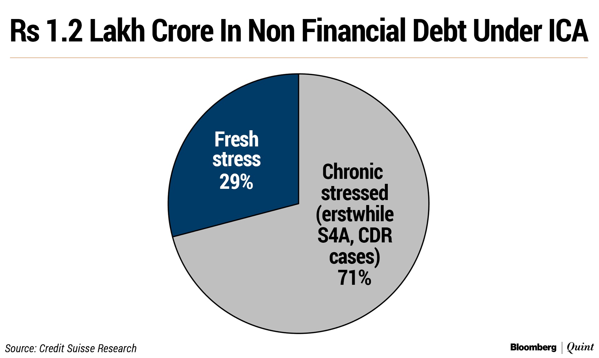 “While bank non-performing assets declined from 11.7 percent in March 2018 to 9.6 percent in Q1 FY20, we now see stressed loans again exceeding 12 percent. Inter-creditor agreements (ICAs) are the only restructuring framework available to banks. Debt of Rs 2.4 lakh crore across 16 stressed corporates is being put through this, partly as IBC outcomes have also slowed,” said Ashish Gupta, managing director and head of equity research, at Credit Suisse India.