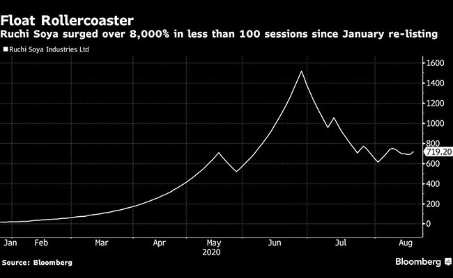 The negligible free float saw Ruchi's shares soar from about Rs 17 at the time of re-listing on January 27 to Rs 1,519 on June 26. The price has since halved. Still, at its peak, the company was valued at $6 billion, ahead of bigger consumer-staples producers including Marico Industries Ltd. and Colgate-Palmolive India Ltd. The stock ended down 3.29 per cent at Rs 696.20 in Mumbai on Thursday.