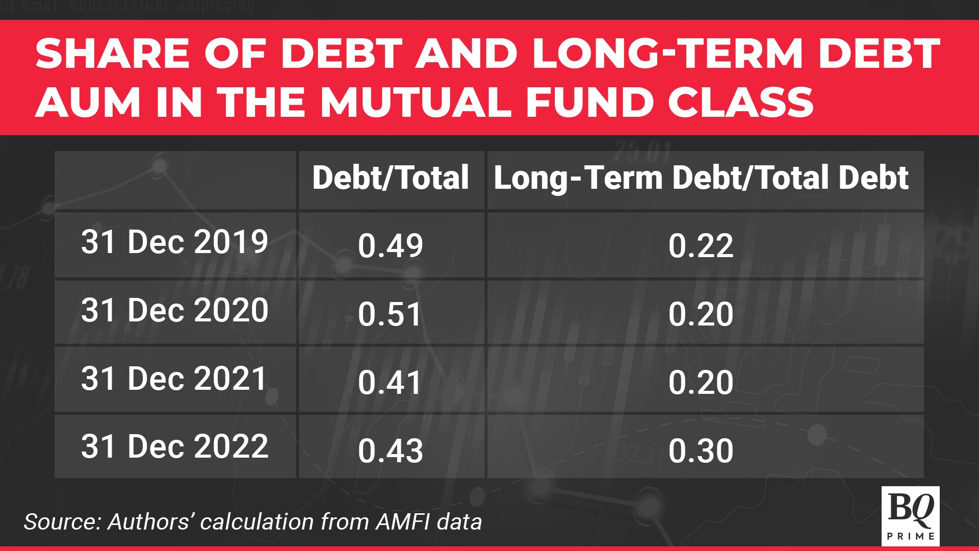 During this time, there was no significant development in the debt markets. The share of debt funds dropped from 49% to 43%, but long-term debt funds grew slowly from 22% to 30% of total debt funds.