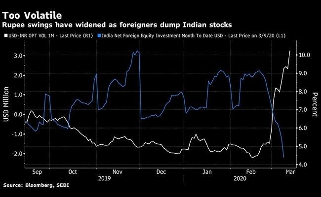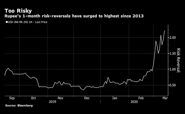 "The jump in options tells us that the market expects the rupee to be volatile in the short term and it may see further weakness," said Rohit Garg, a Singapore-based emerging-markets strategist at Bank of America Securities. When a risk-off wave is sweeping across the globe, "India can't remain insulated," he said.