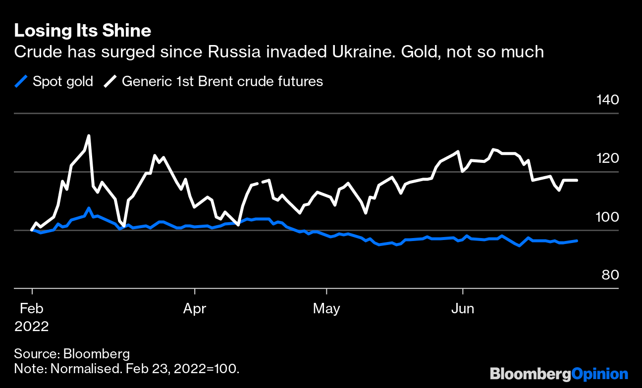 Gold has had a quieter year, down 3.9% since Russian forces rolled across the Ukrainian border. Despite Moscow's status as the third-biggest producer of the yellow metal, the import bans set to be announced at the G-7 meeting this week in Germany aren't likely to reverse that bout of weakness.