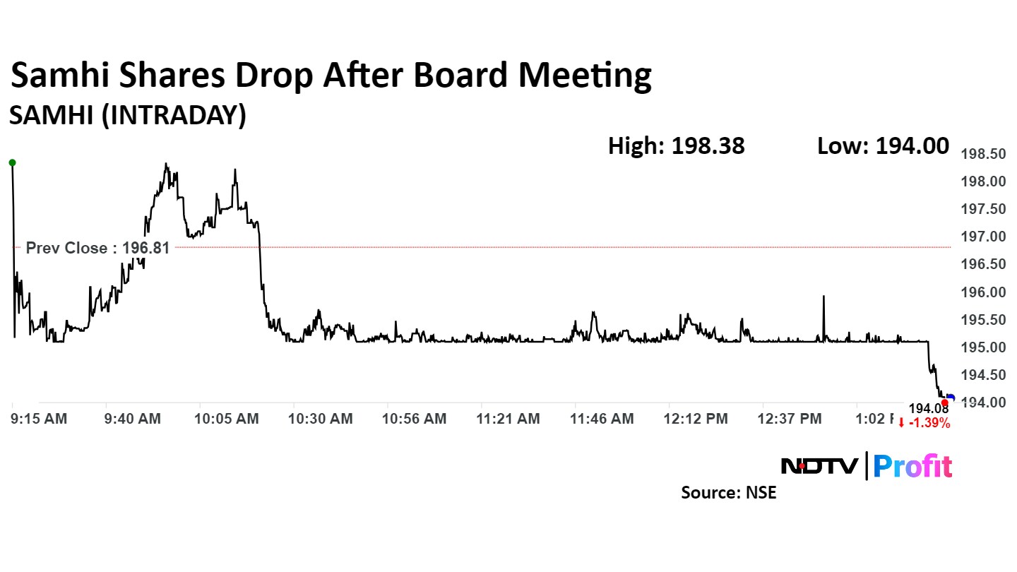 Shares of Samhi Hotels were trading 1.39% lower at Rs 194.08 apiece on the NSE, compared to a 0.57% decline in the benchmark Nifty 50 at 1:29 p.m.