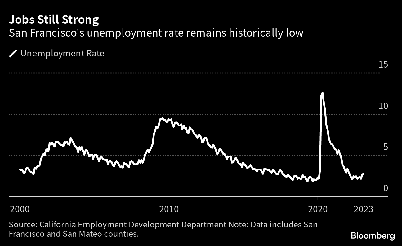 There are many reasons for optimism. The number of visitors to the city grew by 29% to 21.9 million in 2022, according to the San Francisco Travel Association. ChatGPT, from San Francisco-based OpenAI, has sparked hopes that artificial intelligence will be a new driver of the tech economy. And the metro area's unemployment rate as of February was 2.8%, historically low and less than the US rate of 3.6%.