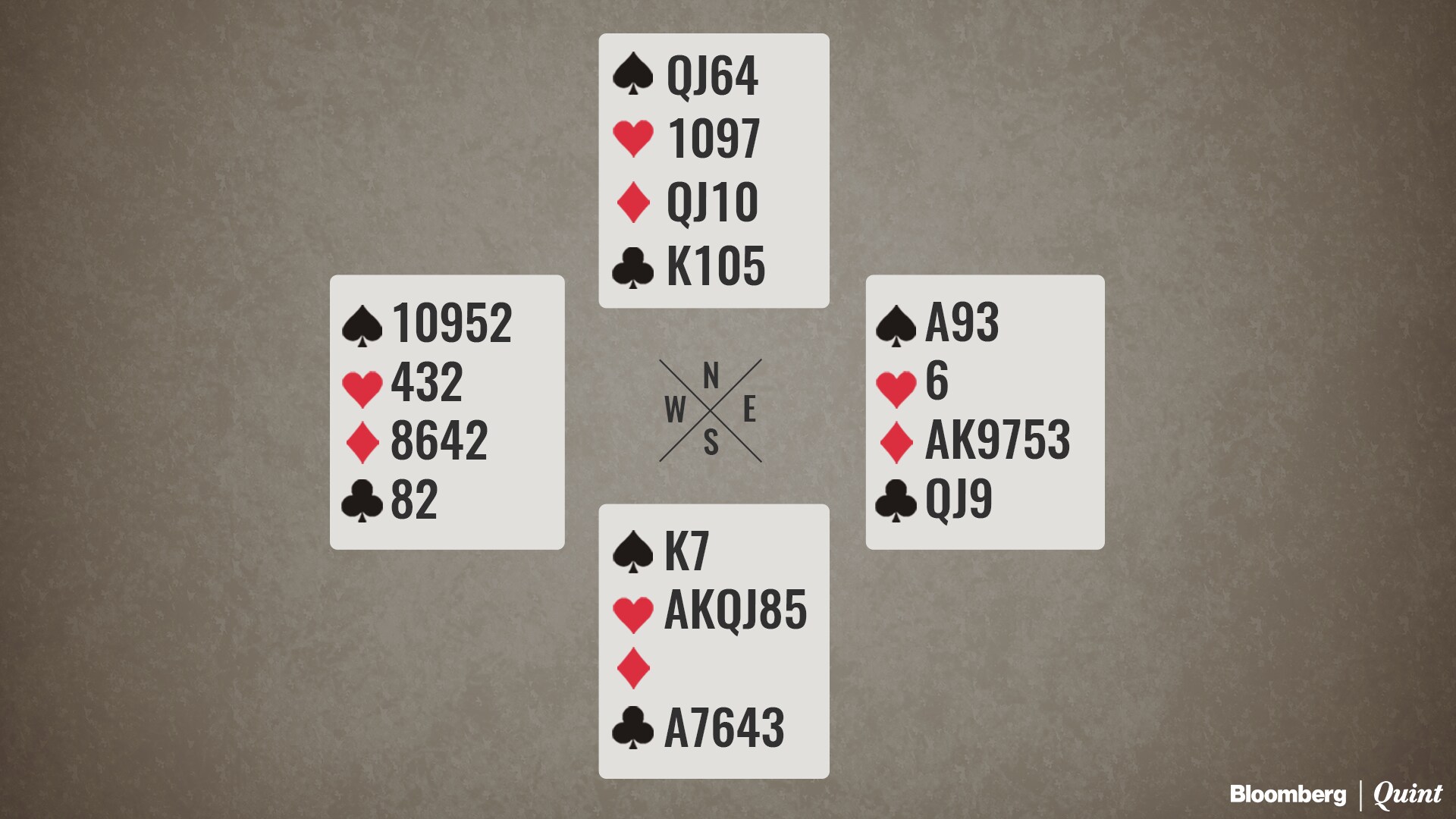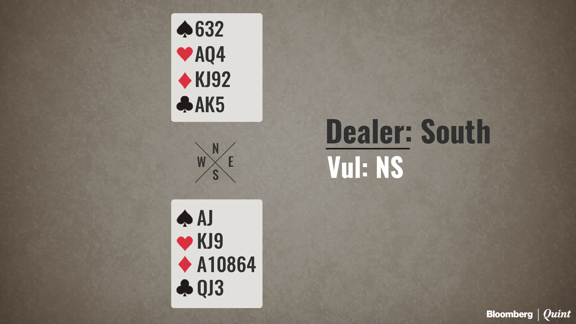 As declarer caught his first glimpse of dummy, he regretted not having opened 1♦. After a brief pause, he realised both contracts depended on locating the diamond Queen so the partnership had landed in the best spot by virtue of North's serendipity! Since West is marked with at least 6 spades, declarer applied the “principle of vacant spaces” to conclude that East was likely to be longer than West in diamonds. Winning the lead of ♠ K with the Ace, he confidently led a diamond to the King and then played the Jack with the intention of finessing unless the Queen appeared.