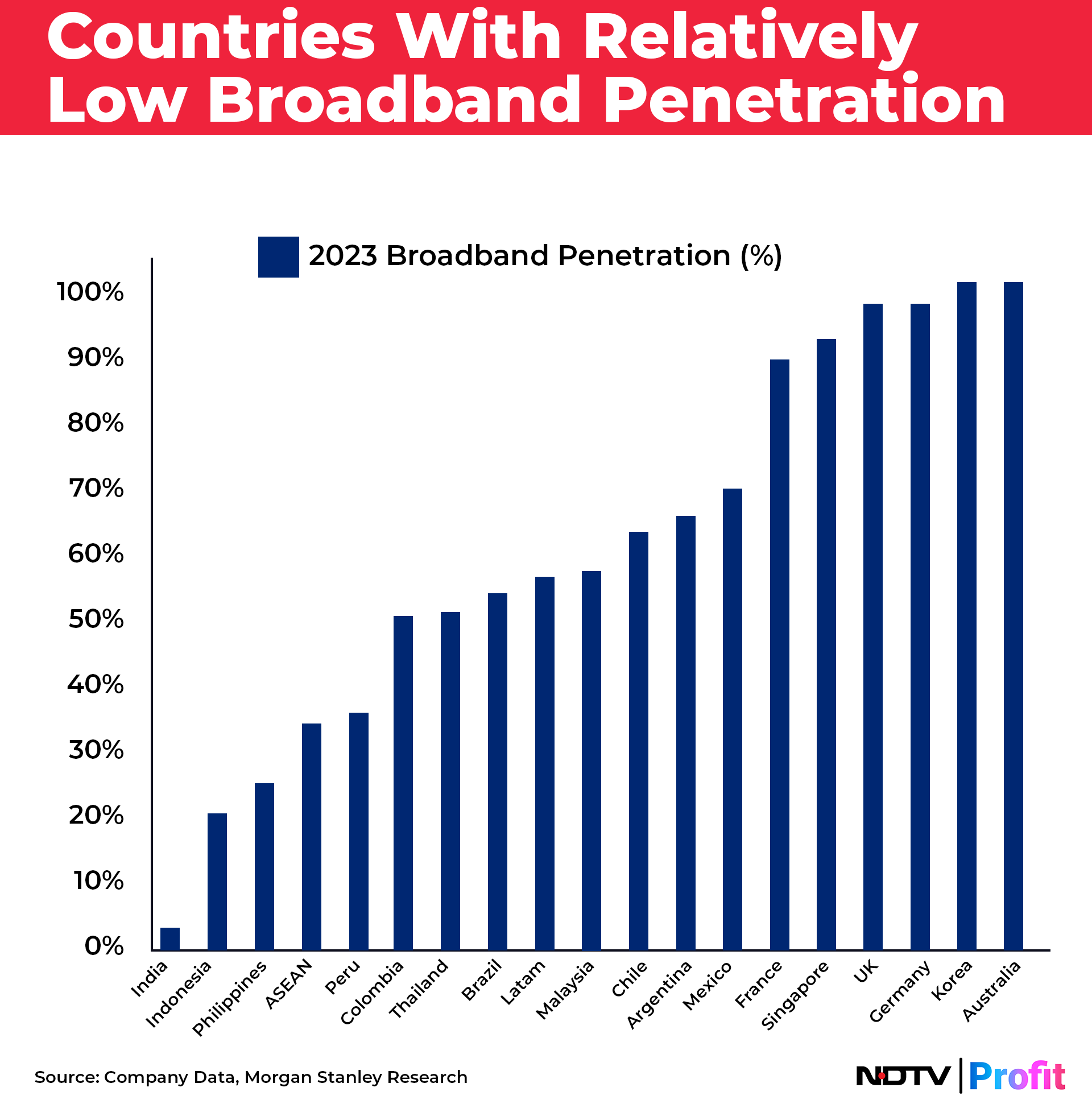 India, with only 3% broadband penetration, remains one of the largest untapped broadband markets in the Asia Pacific, second only to Indonesia and the Philippines in the Asia-Pacific region,​ highlighting the vast opportunities for satellite internet providers.