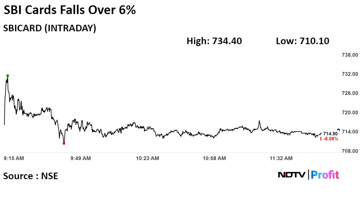 SBI Cards and Payments Services Ltd. shares fell over 6% as its third-quarter profit fell below analysts' estimates, prompting brokerages to downgrade and cut target price on the stock amid credit cost concerns.