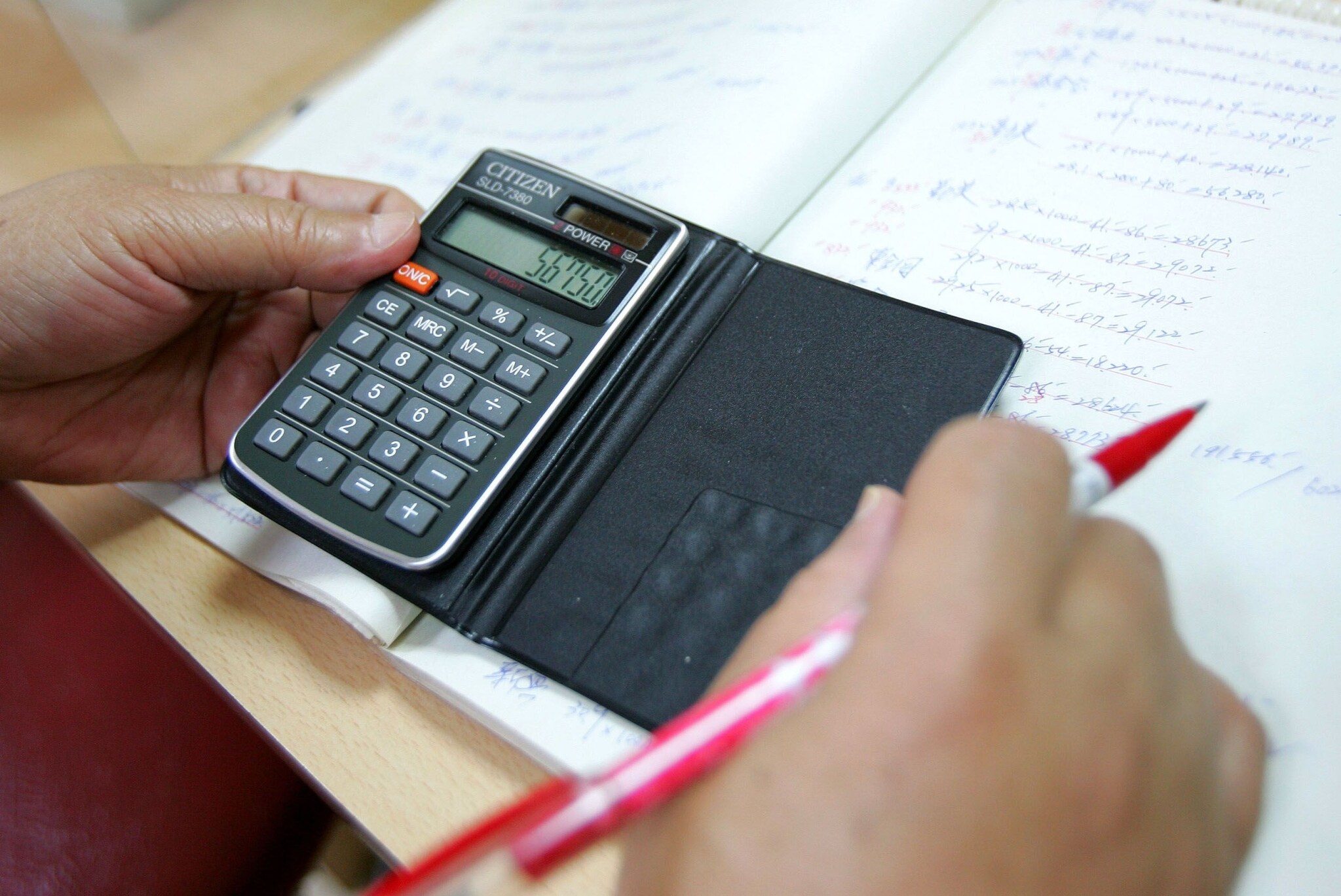 A person uses a calculator. (Photographer: Maurice Tsai/Bloomberg News)