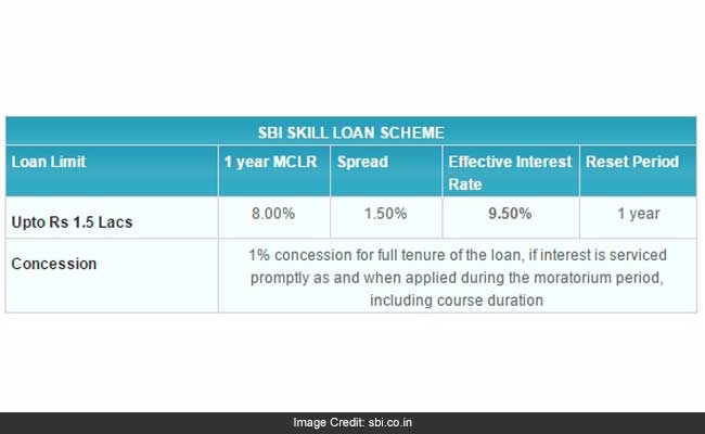 State Bank of India offers loans up to Rs 1.5 lakh under the Skill Loan scheme.