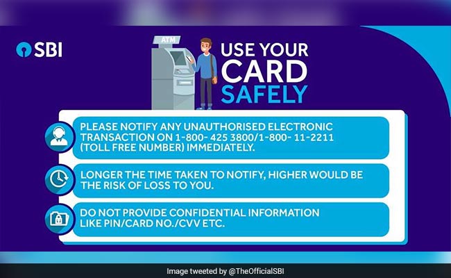 1. In a communication to its customers advising them to use their cards safely, SBI shared helpline numbers 1800-425-3800/1800-11-2211.