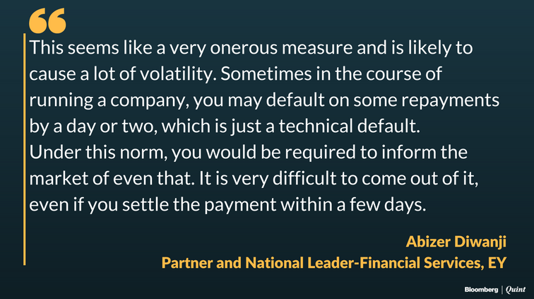 In order to address this critical gap in the availability of information to investors, SEBI has asked listed entities to inform exchanges in case it has defaulted in payment of interest, installment obligations on debt securities, loans from banks and financial institutions and external commercial borrowings (ECBs).