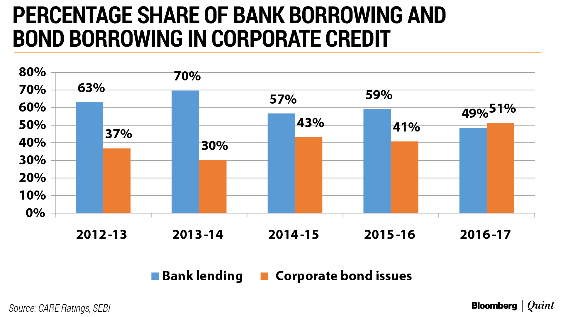 Policymakers, including the government and the Reserve Bank of India, have been pushing the case for bond market borrowings as a way to reduce the concentration of risk in the banking sector. Large corporate borrowings have contributed nearly 80 percent of the bad loans in the current cycle. To prevent a repeat of this in future years and to push for greater transparency in borrowings, regulators want corporates to borrow more from the bond markets.