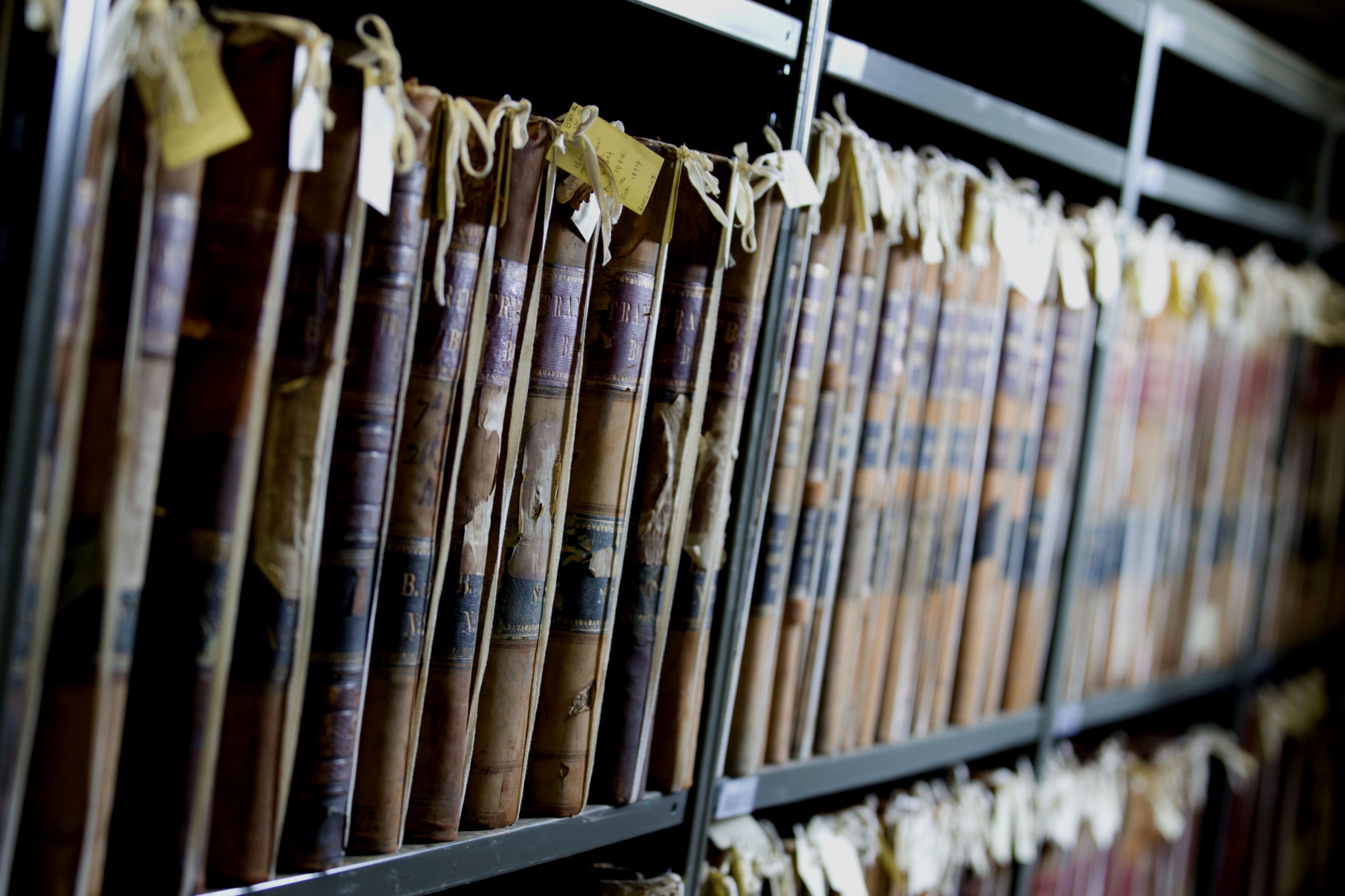 Old Stock ledgers sit on a shelf in a basement vault. (Photographer: Christinne Muschi/Bloomberg)