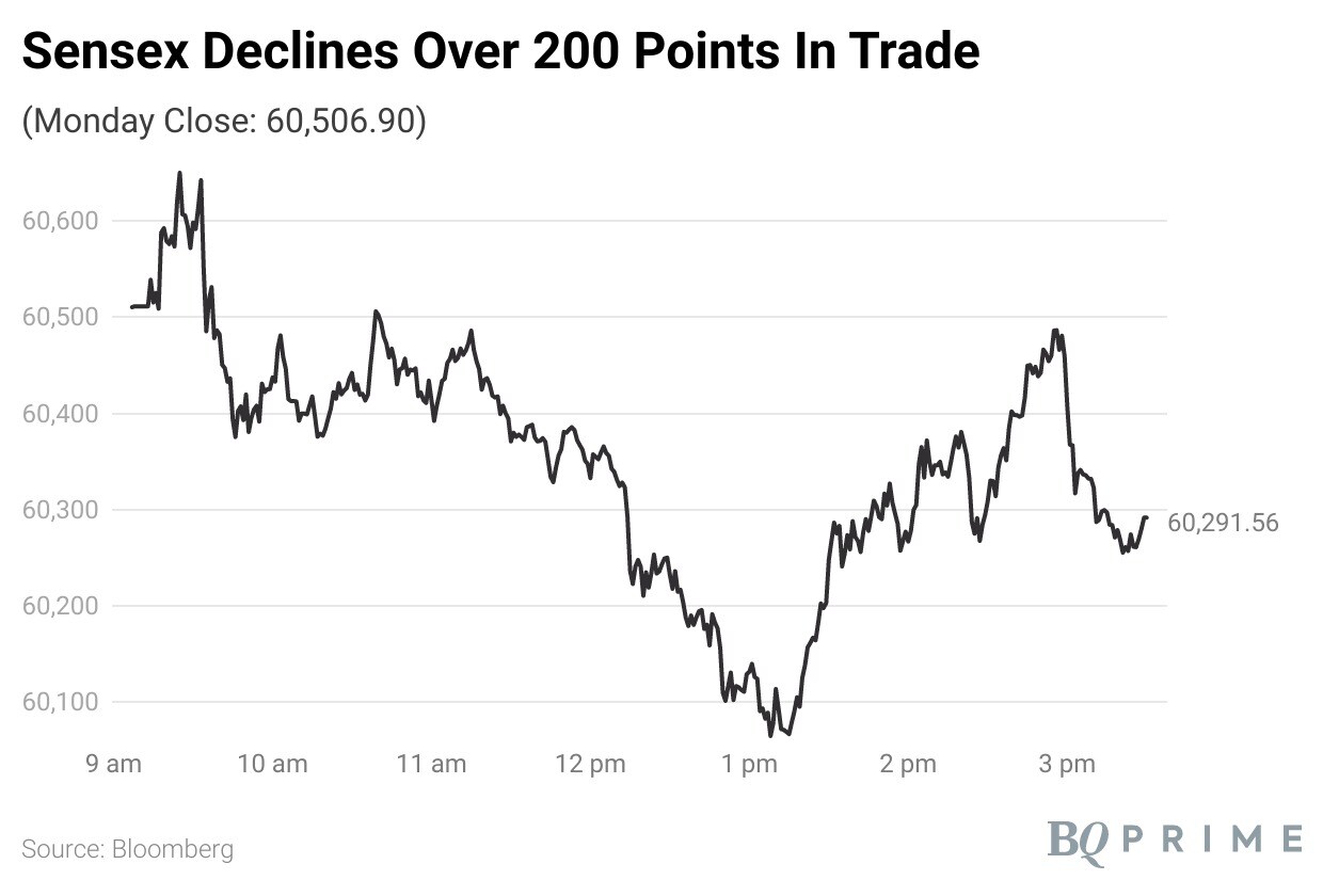 The S&P BSE Sensex closed 221 points, or 0.37%, down at 60,286.04, while the NSE Nifty 50 was 43 points, or 0.24%, lower at 17,721.50 by end of trading hours.