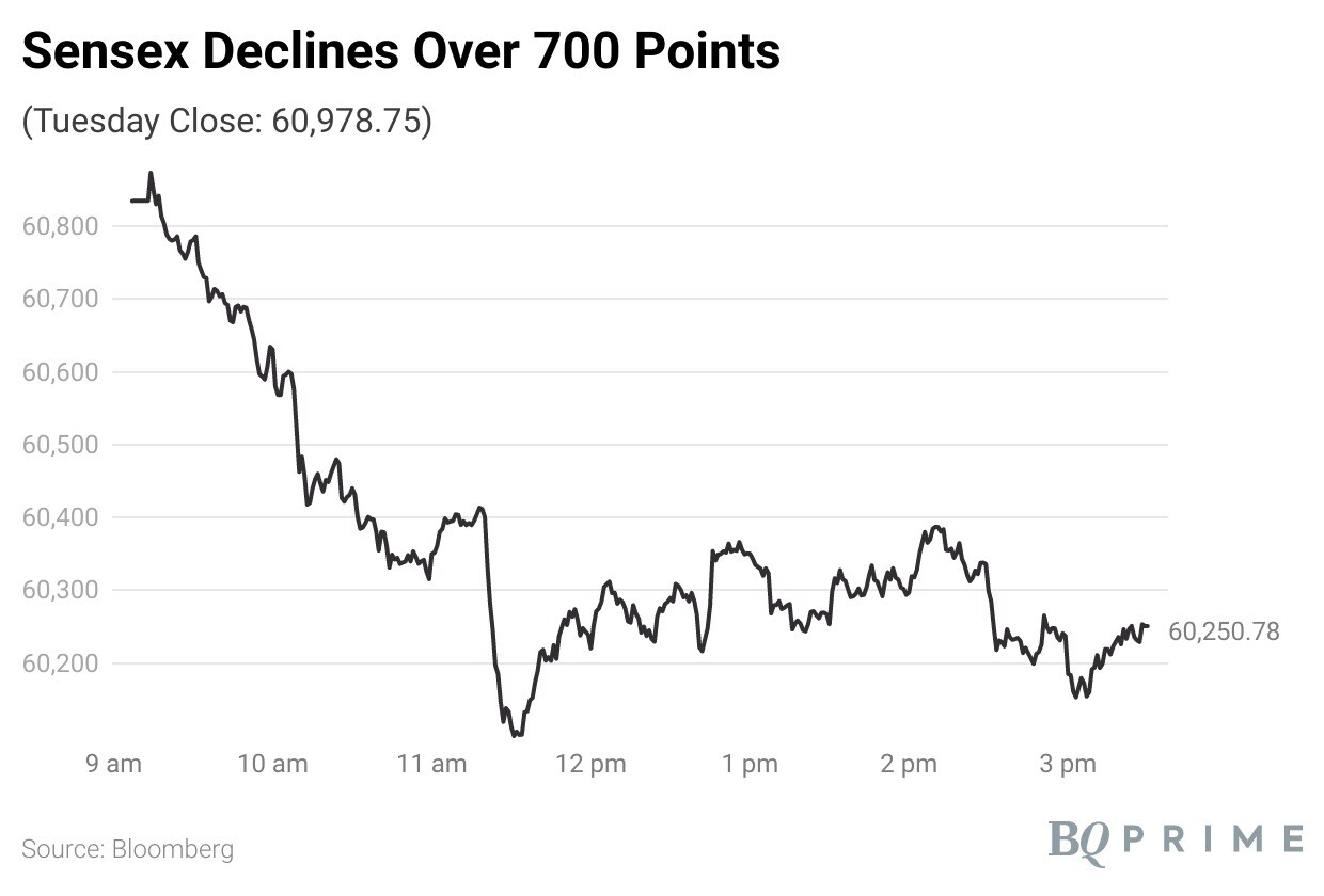 The S&P BSE Sensex closed 774 points or 1.27% lower at 60,205.06, while the NSE Nifty 50 eased 226 points or 1.25% to end at 17,891.95.