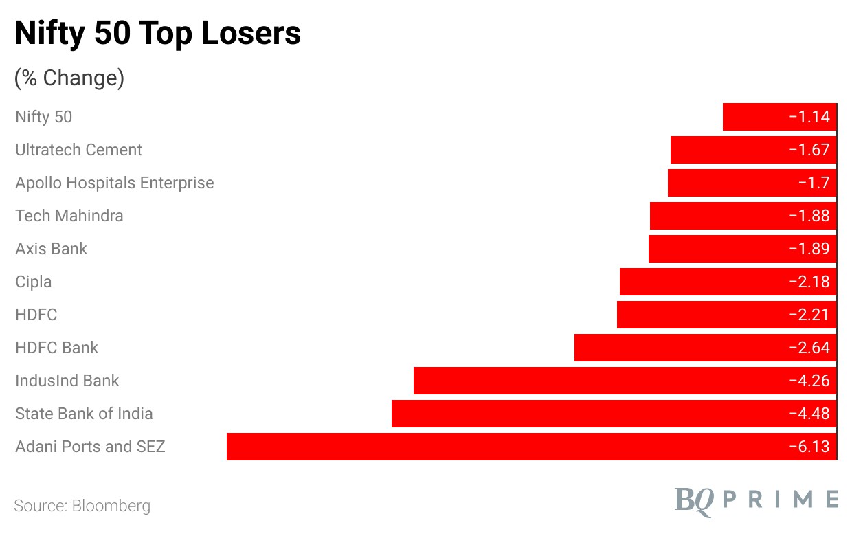 Whereas, Adani Ports and Special Economic Zone Ltd., State Bank of India, IndusInd Bank Ltd., HDFC Bank Ltd. and HDFC Ltd. were the top losers amongst the NSE Nifty 50 constituents.