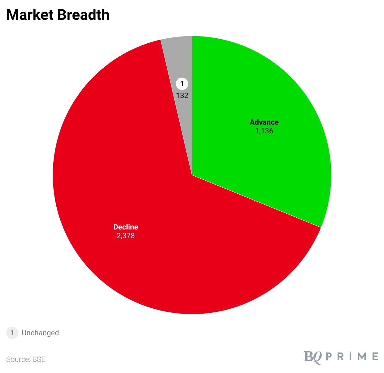 The market breadth was skewed in favour of the bears. About 1,136 stocks rose, 2,378 declined, 132 remained unchanged on the BSE.