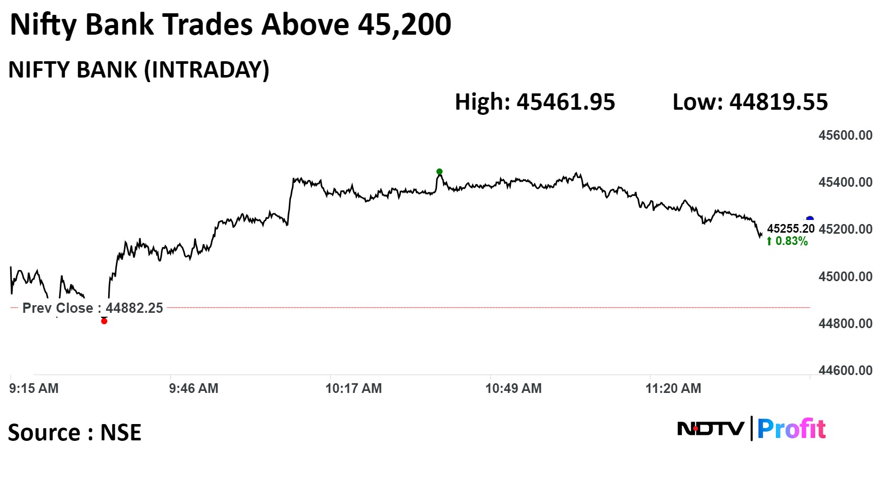 Most sectoral indices traded higher, with Nifty Financial Services gaining over 1%. While, Nifty Metal, Nifty Realty, Nifty Media, and Nifty IT fell.