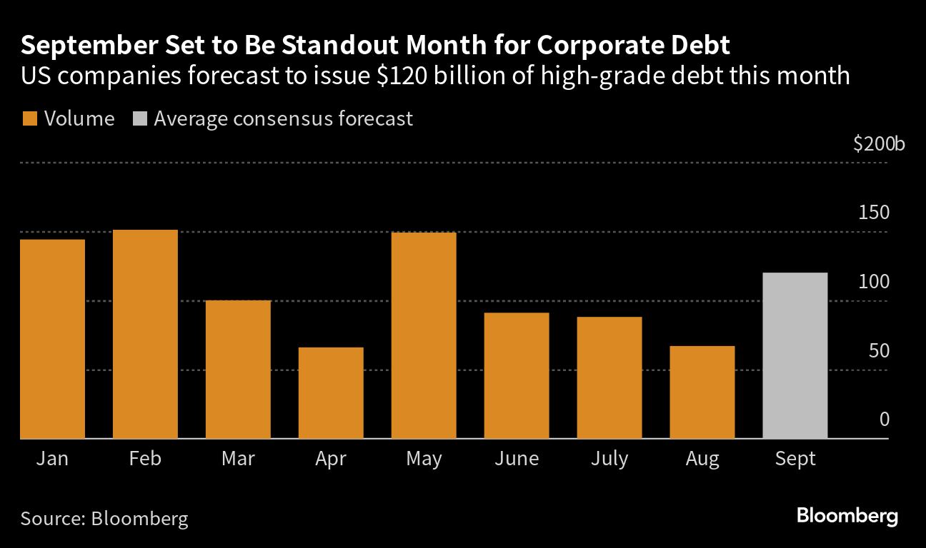(Bloomberg) -- Global debt markets are bursting with new deals as September kicks off, with investment-grade companies rushing to lock in borrowing costs before central bankers can raise them further.