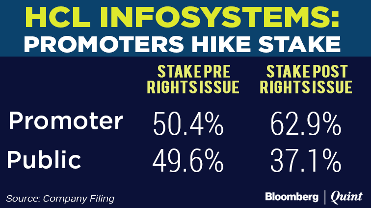 Billionaire Shiv Nadar-led promoter group increased its stake in HCL Infosystems Ltd. by subscribing to about 90 percent of the hardware distributor and software services provider's Rs 500-crore rights issue aimed at paring debt.