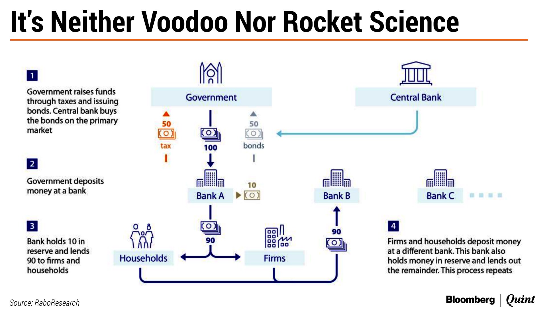 Debt monetisation or monetary finance has been gained much attention under the flag of Modern Monetary Theory, MMT for short. MMT seems to generate some consternation among economists, and indeed people in general. They seem unable to grasp that governments, unlike households or businesses, are not balance-sheet constrained. They can just print money; there is a magic money tree. Indeed, the mechanism by which MMT works is very simple, as depicted in this flow-chart.