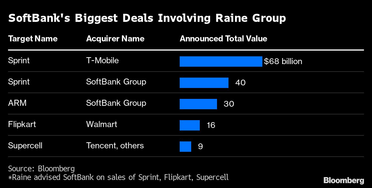 Masayoshi Son, SoftBank's founder and chief executive officer, invested in Raine when it was launched in 2010 by Joseph Ravitch, an ex-partner at Goldman Sachs Group Inc., and Jeffrey A. Sine, a former senior banker at UBS Group AG.Â