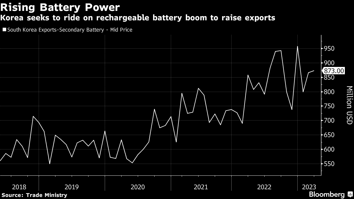 South Korea is home to two of the world's biggest automakers, Hyundai Motor Co. and Kia Corp., as well as other battery makers such as SK On Co. and Samsung SDI Co. The nation sees electric vehicles, rechargeable batteries and spacecraft as key growth drivers of its economy.