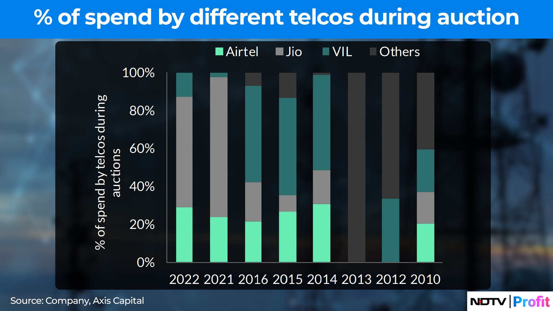It is also a leader in the low-band spectrum that is considered for propagation and coverage. Jio is the leader here, with 50% of the total holding, according to Axis Capital.