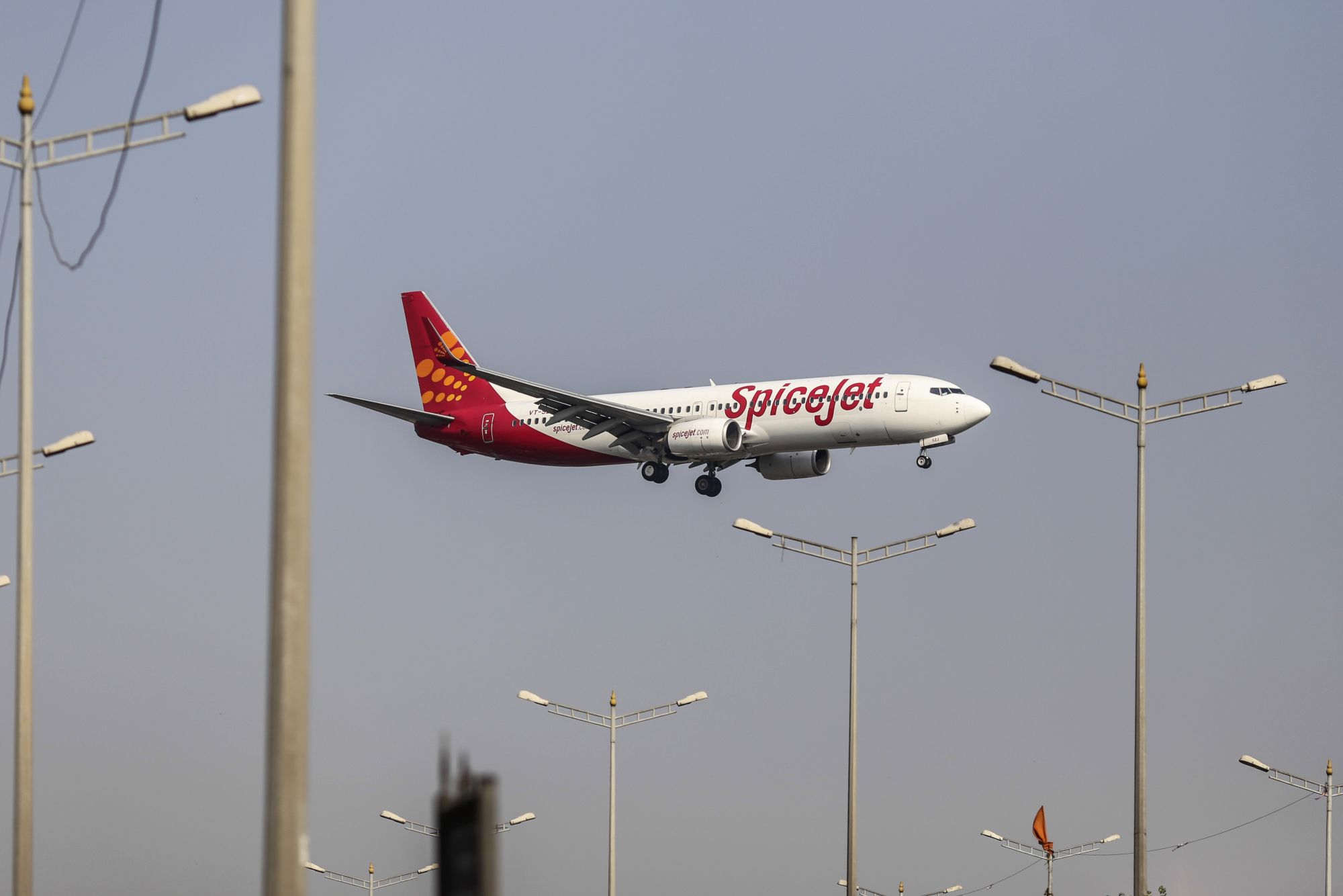 A SpiceJet Ltd. aircraft prepares to land at Chhatrapati Shivaji International Airport in Mumbai, India, on Monday, Nov. 7, 2016. Photographer: Dhiraj Singh/Bloomberg