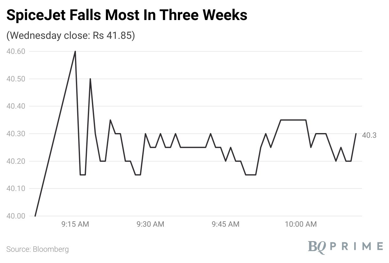 Shares of SpiceJet Ltd. fell the most in three weeks after India's aviation regulator extended the cap on its operations till Oct. 29.