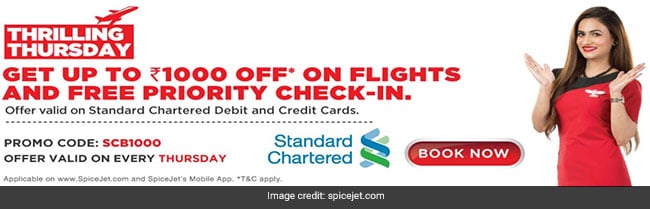 (SpiceJet's Thrilling Thursday offer on flight tickets is valid on Standard Chartered cards.)