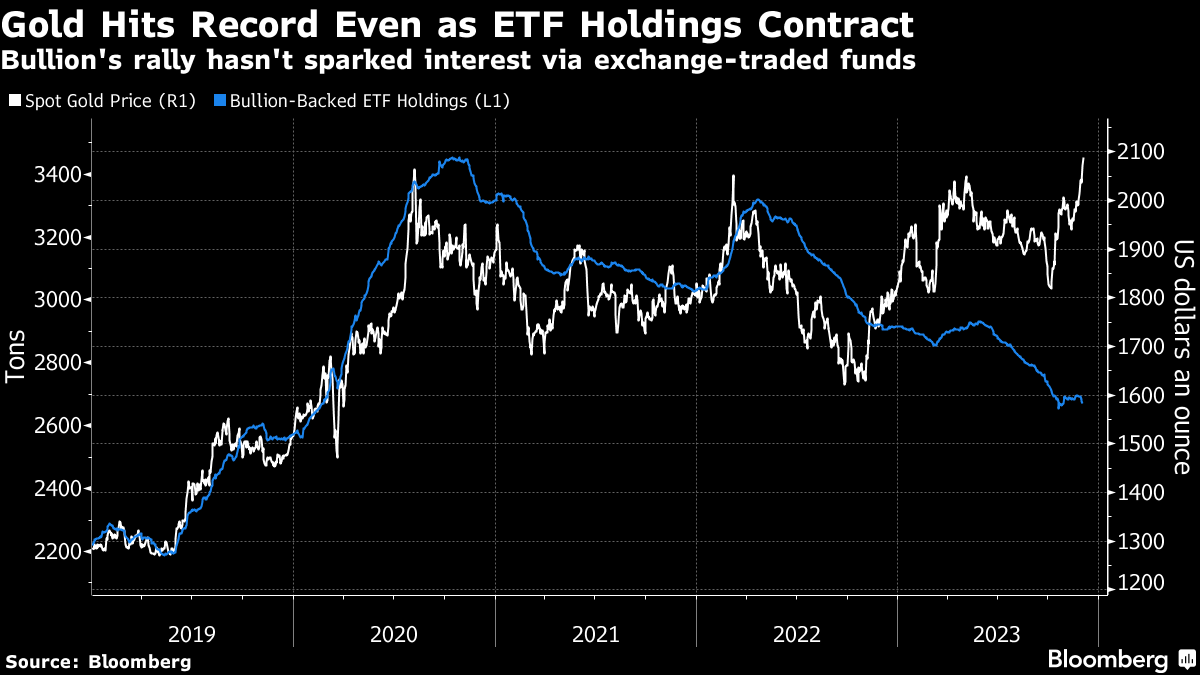 The precious metal is trading at a hefty premium to models of its price based on its historic relationship with the dollar and Treasuries. That dynamic has persisted for most of the past year, driven by record buying by central banks, which helped bullion weather persistent outflows by gold-backed exchange traded funds.