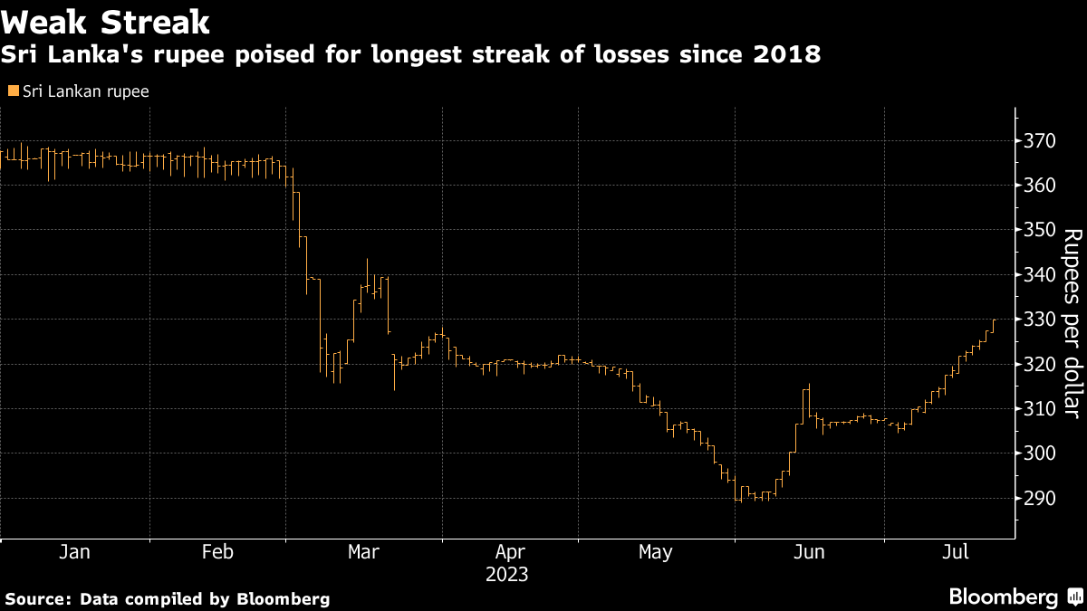(Bloomberg) -- Sri Lanka eased restrictions on the foreign-exchange market to allow companies and individuals to send more dollars abroad. The rupee weakened a 15th day.