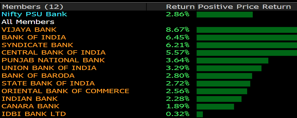 Shares of state-owned banks rose after the report. The NSE Nifty PSU Bank Index closed 2.9 percent higher, making it the best performing sectoral gauge.