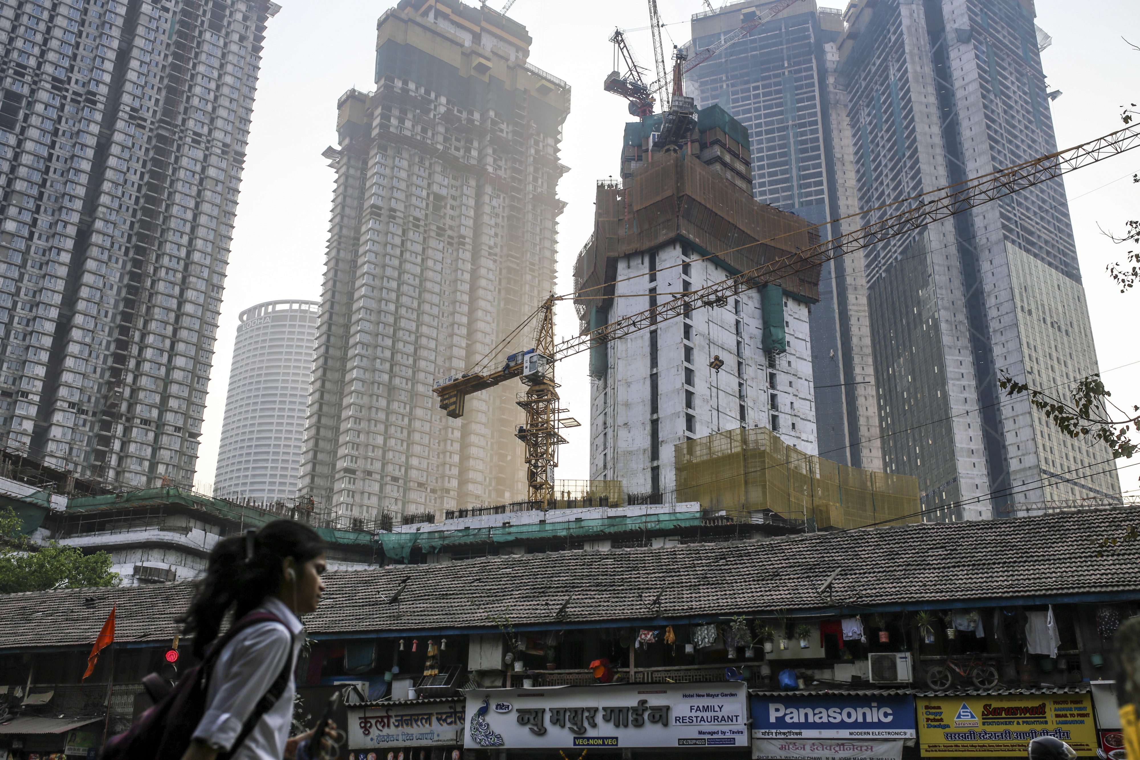 The two towers of Trump Tower Mumbai, right, stand under construction at Lodha The Park, a luxury residential project developed by Lodha Developers Ltd., in Mumbai, India (Photographer: Dhiraj Singh/Bloomberg)