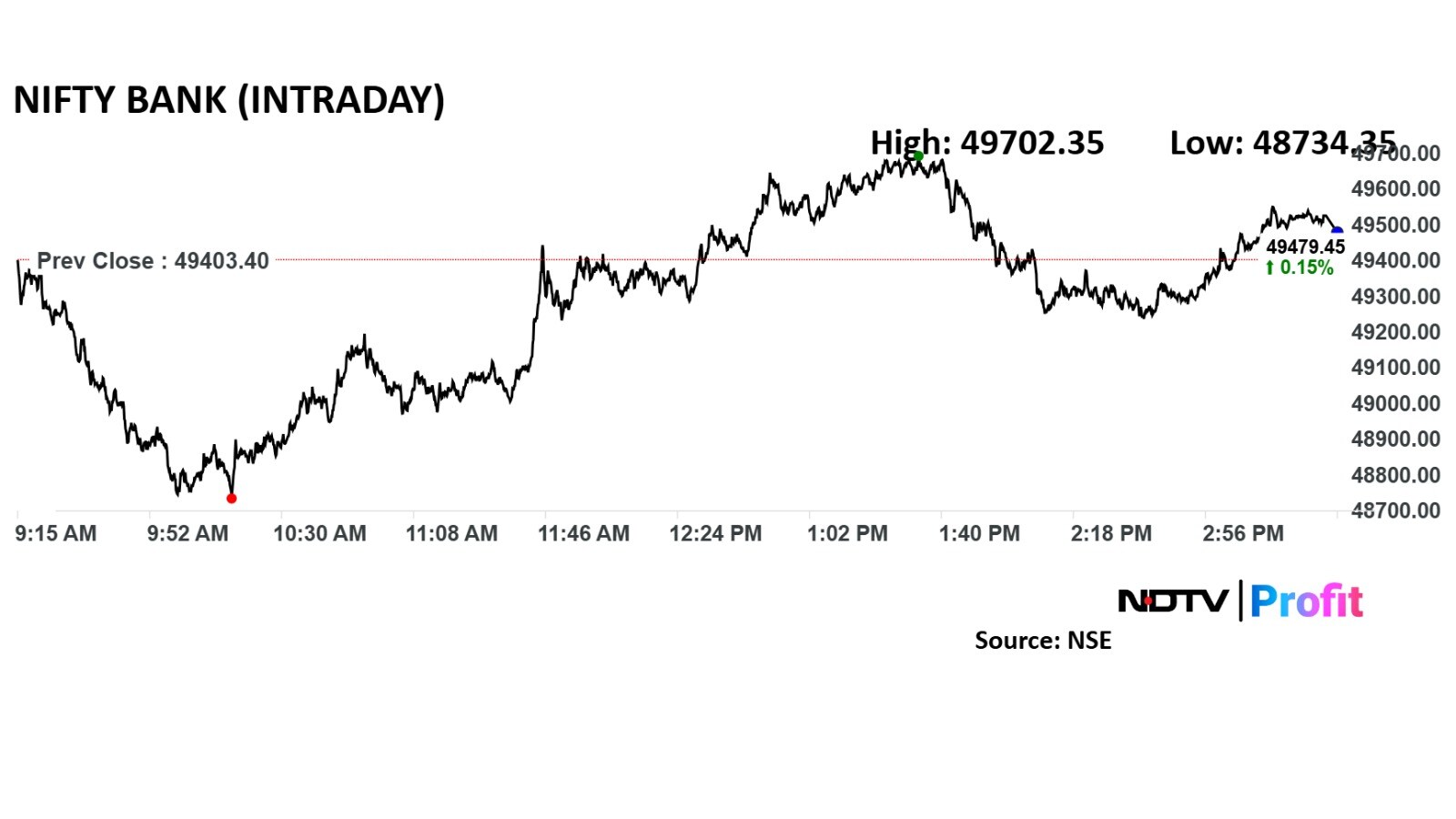 The NSE Nifty Bank also closed higher at 49479.45. The index ended 0.15% up by 76.05 points.