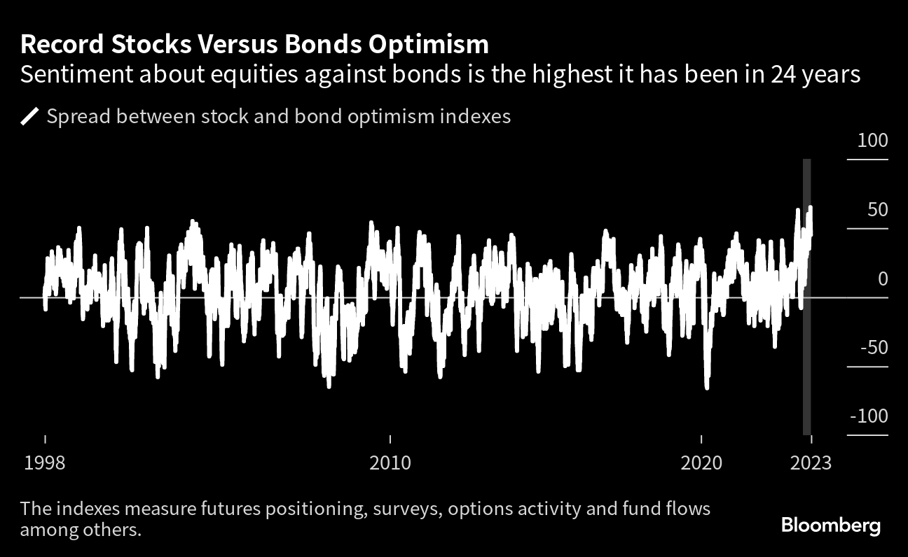 It is now being overrun, though, by an avalanche of demand for equities that has unleashed a furious rally across the globe and, in a sign the gains are likely far from over, made investors more optimistic about stocks relative to bonds than at any point since SentimenTrader models began comparing them 24 years ago.