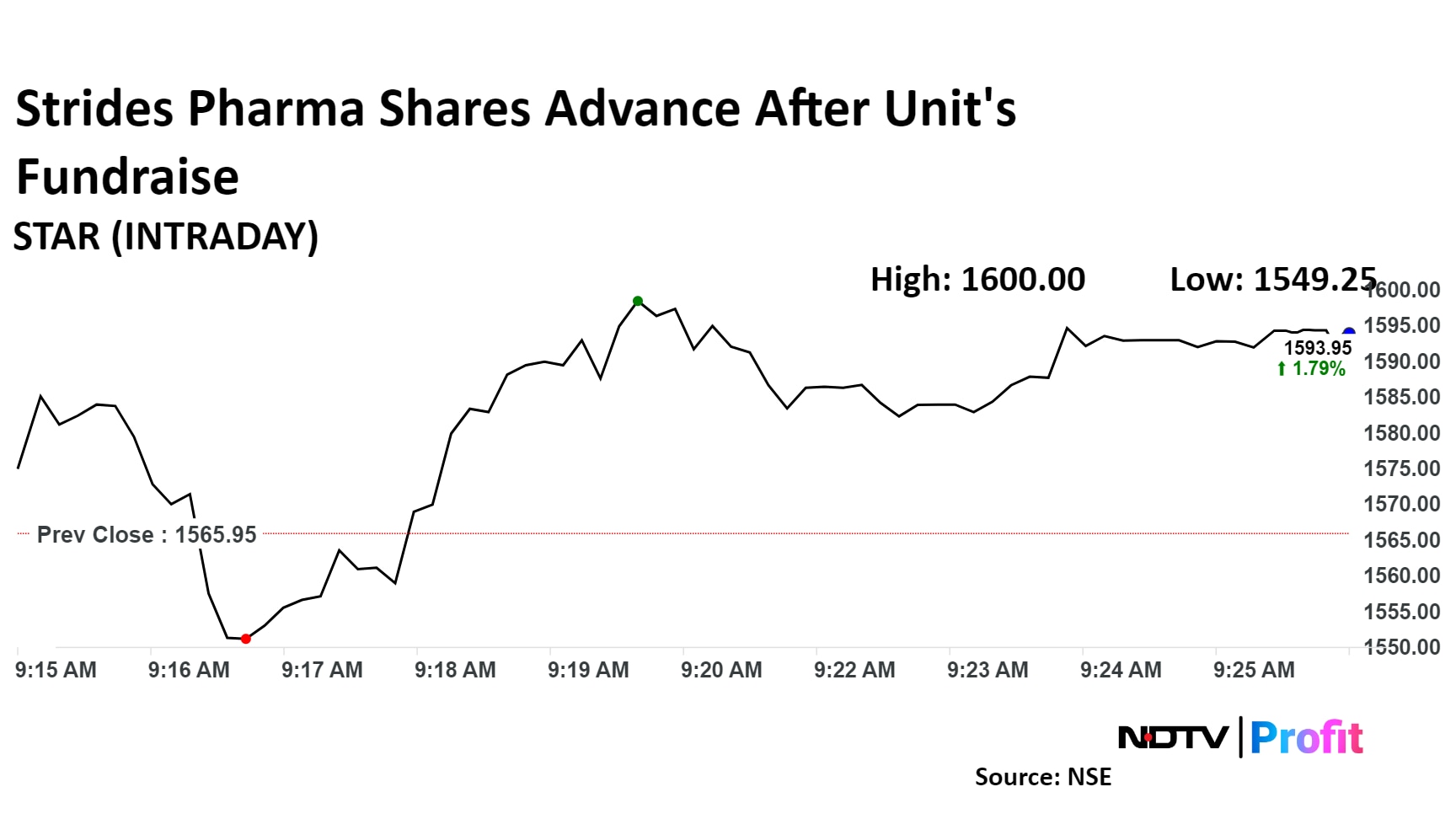 Strides Pharma share price was trading 1.8% higher at Rs 1,593.95 apiece as of 9:27 a.m., after the announcement, compared to 0.14% decline in the benchmark Nifty 50.