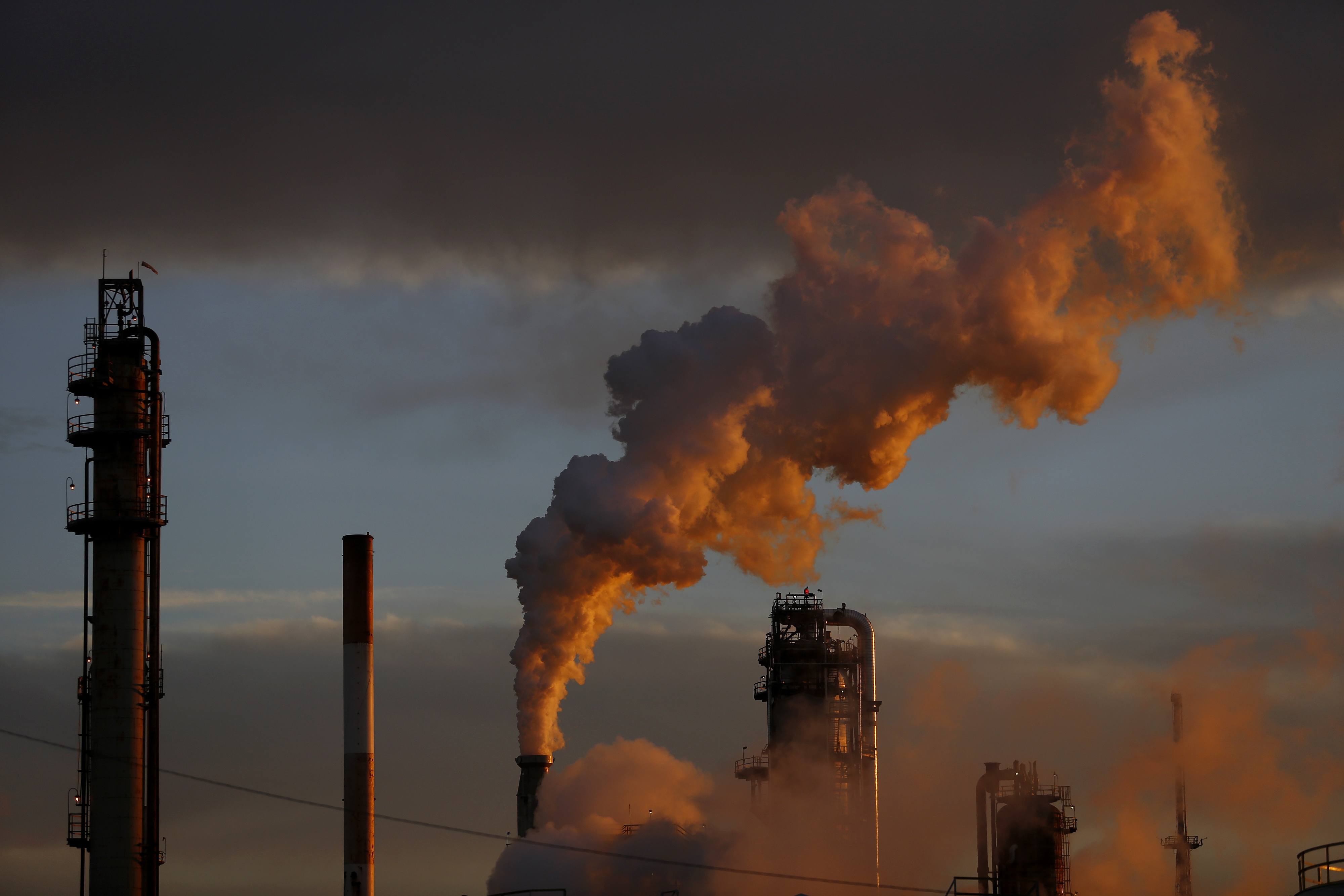 Smoke rises out of an oil refinery (Photographer: Luke Sharrett/Bloomberg)