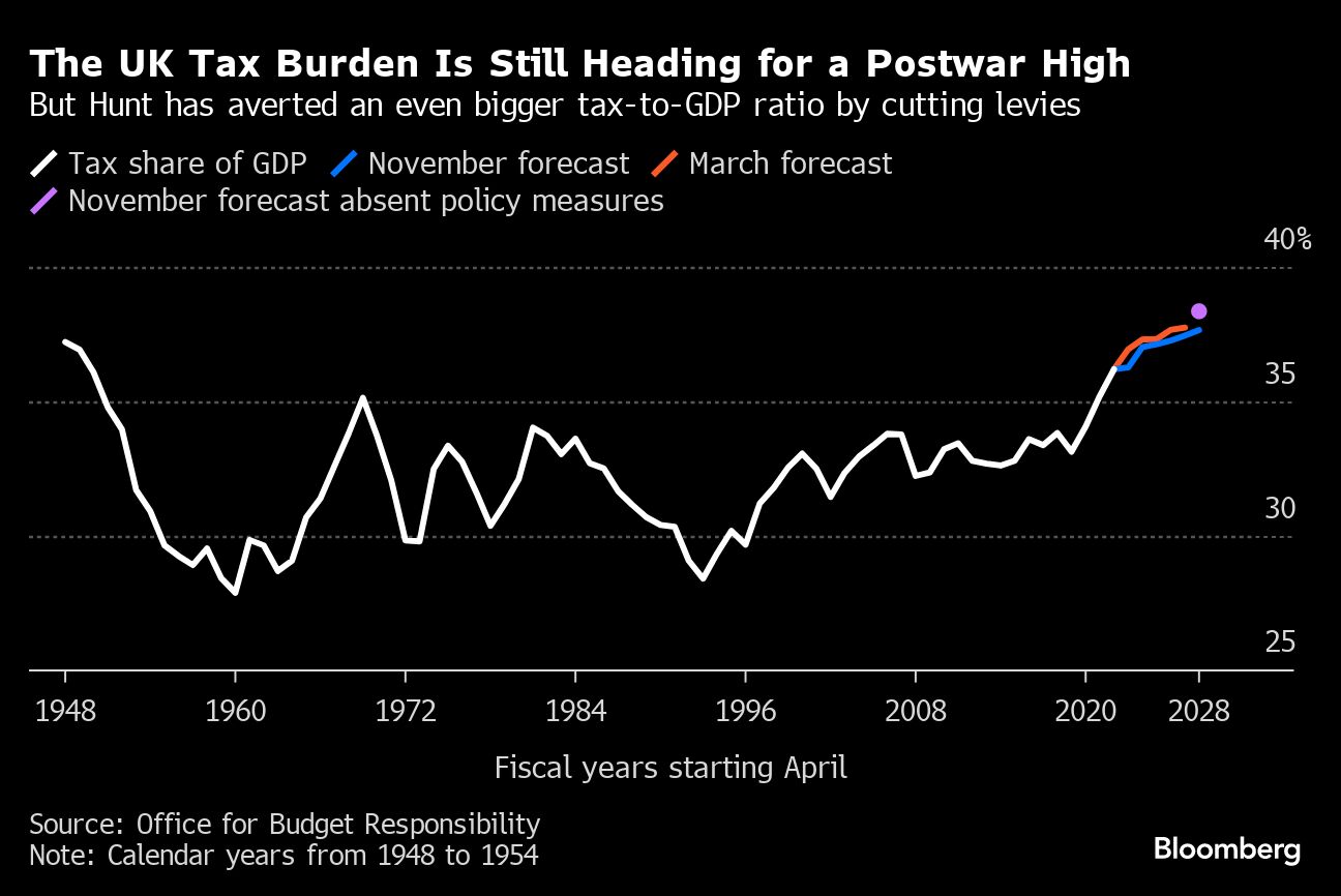 Still, some Tory lawmakers are skeptical that a focus on tax cuts will shift the dial with voters, who polls show are more concerned by the state of Britain's public services. Hunt's statement implies £19 billion ($24 billion) of further real-terms spending cuts to departmental budgets in the next parliament, according to the Office for Budget Responsibility.