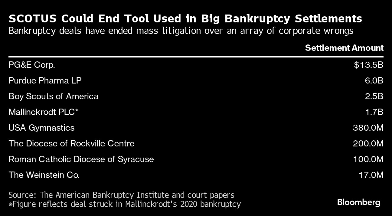 (Bloomberg) -- Members of the Sackler family who profited from the sale of OxyContin may inadvertently upend the way almost every big settlement is carried out in bankruptcy court.