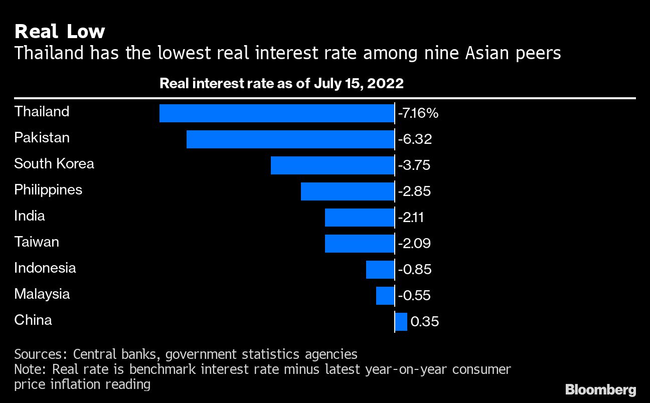 Those moves won't just put pressure on Thailand and Indonesia, but also countries like India that are already returning policy toward pre-pandemic levels. That's because higher borrowing costs in the US tend to drain capital from emerging markets as money managers chase yields amid negative real rates in Asia.