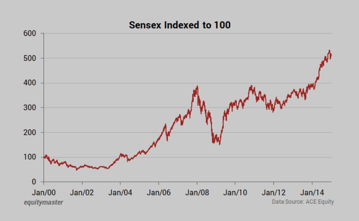Well, the chart above marks Sensex's trajectory for almost 15 years, from January 2000 to January 2015.