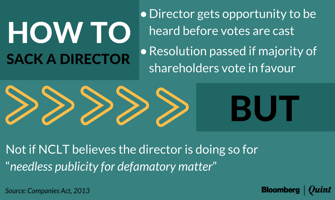 Because the law also provides for the company or any other aggrieved person to apply to the National Company Law Tribunal (NCLT) to block Mistry's representation (written or otherwise) on grounds that he's doing so for “needless publicity for defamatory matter”. And yes, the NCLT can even order Mistry to pay the company's costs on the application.