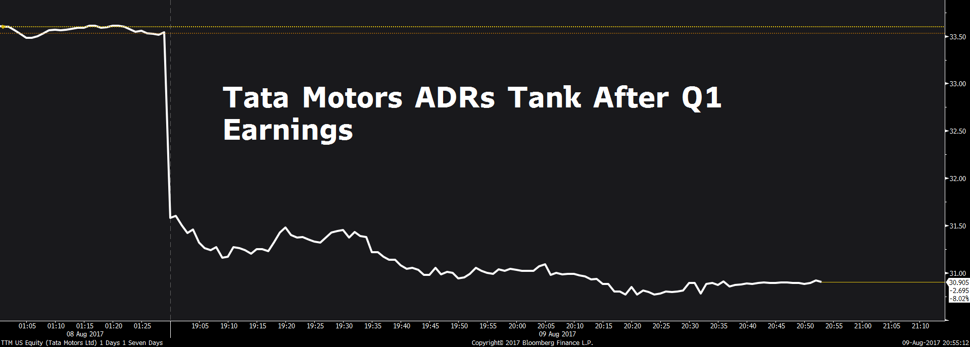 Tata Motors' American depositary receipts, which are traded in the U.S., fell as much as 8 percent after the earnings announcement on Wednesday evening.